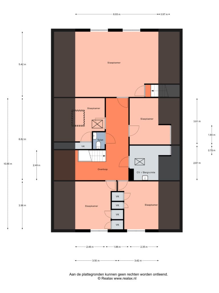 Ruime overloop, met toegang tot maar liefst vijf slaapkamers, het toilet en een cv-/bergruimte. Alle ruimte voor een groot gezin, of hobby’s die extra ruimte vergen. Met name de slaapkamer boven de garage is zeer royaal en kan een prachtige master-bedroom worden, met geweldig uitzicht naar achteren toe. Tevens kan dit prima dienst doen als praktijkruimte, omdat het een eigen toegang heeft vanuit de garage.