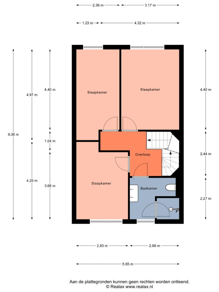 Overloop, toegang tot drie slaapkamers en de badkamer. Alle slaapkamers hebben een goed formaat, net als de badkamer. Deze is voorzien van een inloopdouche, toilet en dubbele wastafel. Voor extra comfort zit er vloerverwarming in de badkamer.