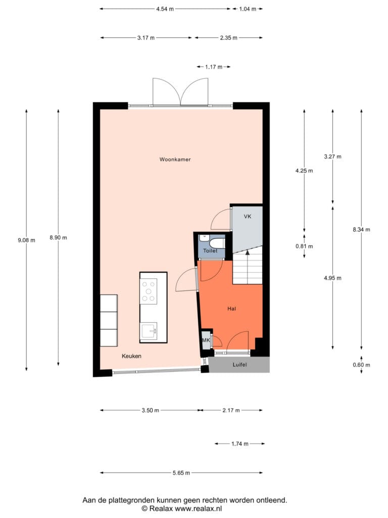 Entree/hal, toegang het toilet, de meterkast en de woonkamer met open keuken. In de woonkamer komt veel natuurlijk daglicht binnen, door de grote ramen. Hierdoor heb je tevens veel verbinding tussen binnen en buiten. Wat opvalt is de vrije ligging, met veel groen, aan de achterzijde en dat midden in het dorp! De keuken heeft een moderne uitstraling en beschikt over goede inbouwapparatuur: gaskookplaat, vaatwasser, koelkast en een oven.