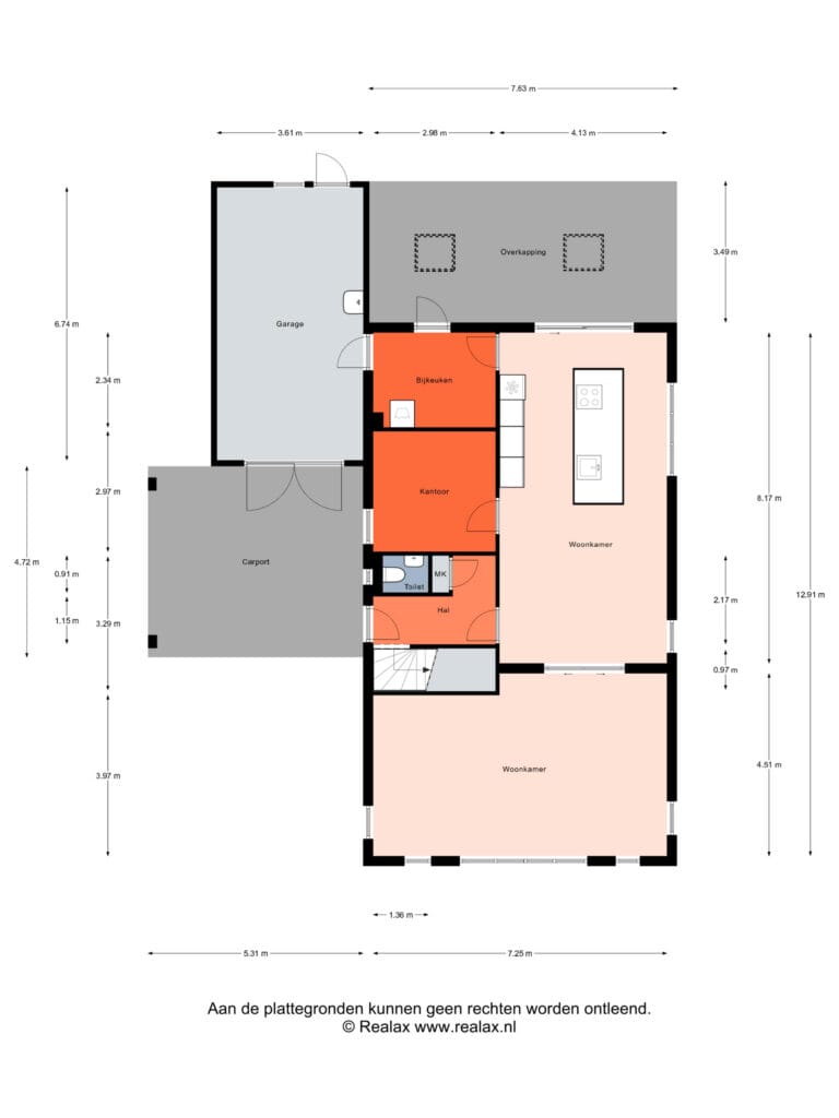 Daarnaast beschikt de begane grond over een fijne kantoorruimte, ideaal voor thuiswerken. De bijkeuken biedt ruimte voor de wasmachine en geeft toegang tot de garage. De ruime garage is voorzien van dubbele deuren aan de voorzijde, een loopdeur naar de tuin en de opstelling van de warmtepomp.