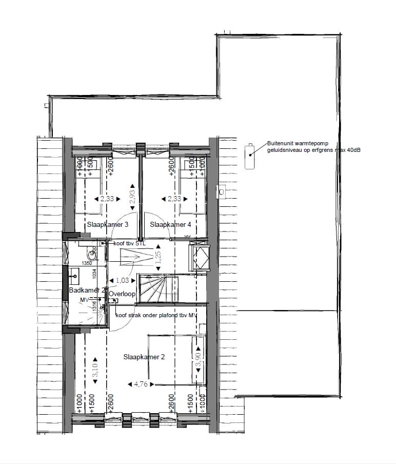 Op de verdieping vindt u een overloop met royale vaste kast en drie slaapkamers. Als meerwerkoptie is een dakkapel mogelijk waarin een tweede badkamer kan worden gerealiseerd. Ook is het mogelijk een slaapkamer in te ruilen voor een badkamer.