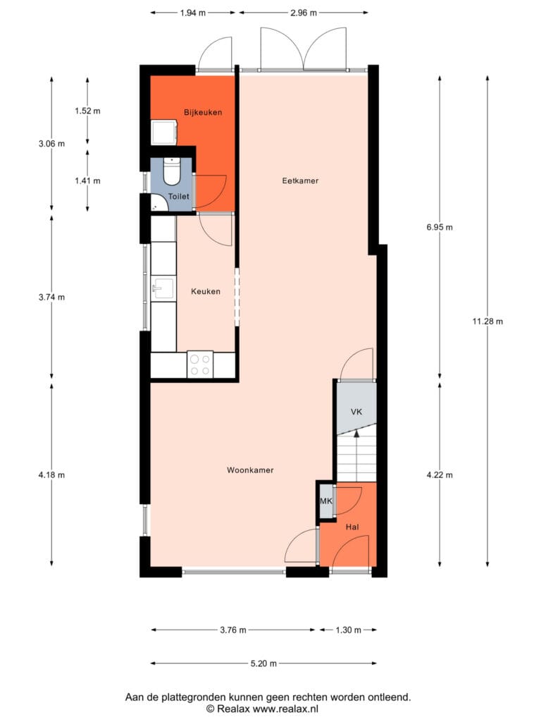 – Uitbouw met openslaande deuren naar de tuin.