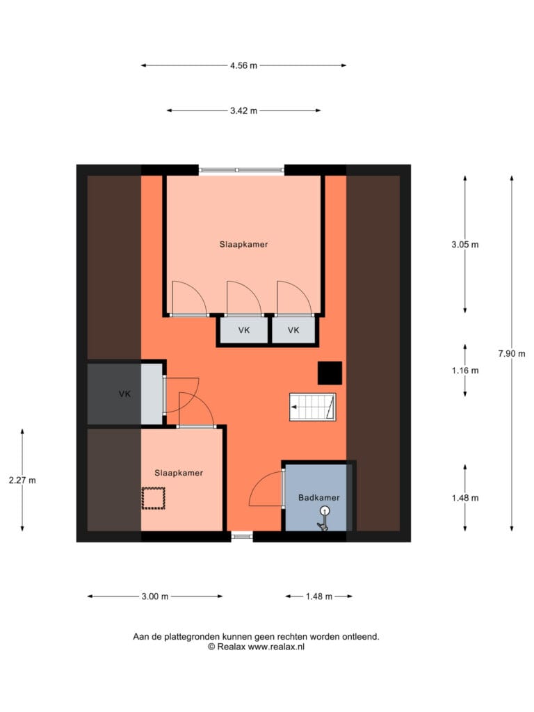 Voorheen een open zolder, later ingericht met (slaap)kamers. Deze verdieping biedt potentie om naar eigen wens opnieuw in te delen.