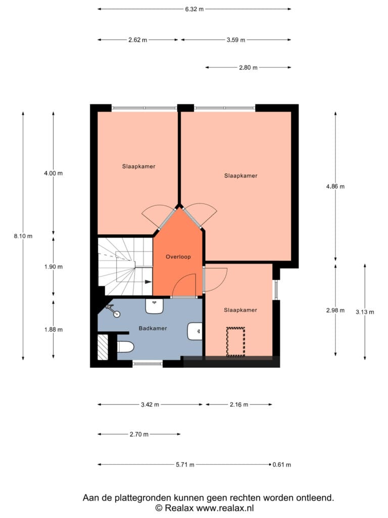 Overloop met toegang tot drie slaapkamers, allen voorzien van pvc-laminaatvloeren. Aan de achterzijde zijn rolluiken geplaatst. De luxe badkamer beschikt over een douche, twee wastafelmeubels en een tweede toilet.