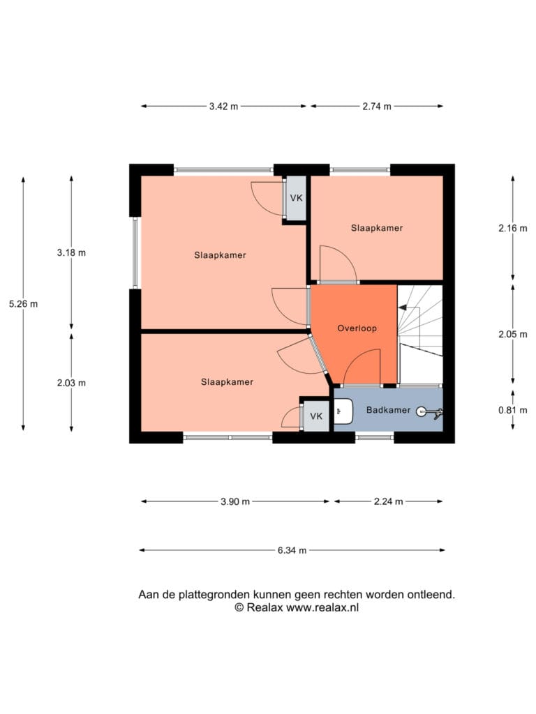 De overloop geeft toegang tot drie slaapkamers en de badkamer. De badkamer is voorzien van een wastafel en douche.