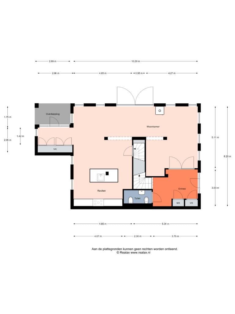 Entree/hal met toiletruimte (voorzien van zwevend toilet, urinoir en fontein), bergruimte en trapopgang.
