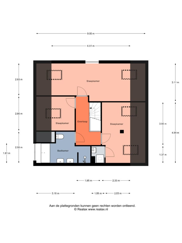 Overloop, 3 slaapkamers (waarvan één zeer royale ouderslaapkamer – mogelijkheid tot 4e slaapkamer).