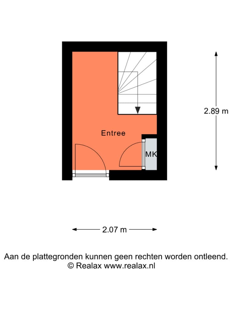 Eigen entree met meterkast en trapopgang. Op de begane grond bevindt zich tevens de privé tuin aan de achterzijde van het gebouw en een eigen fietsenberging van ca. 9 m².