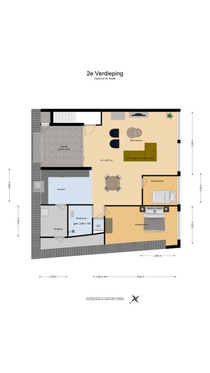 – Totaal 3 kamers, waarvan 2 slaapkamers.