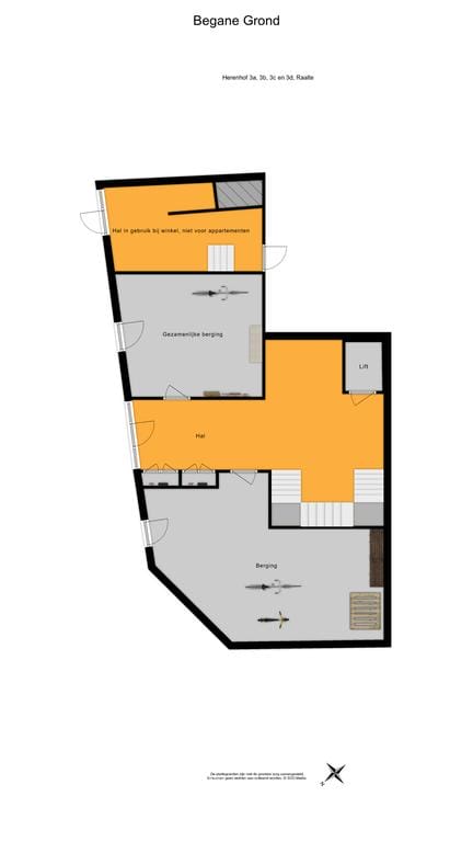 Bij binnenkomst in de centrale hal van dit kleinschalige wooncomplex (in totaal 5 ruime en luxe appartementen) wordt u verrast door een royale, hoge en statig entree met fraaie trappartij en lift naar 1e verdieping. Op de begane grond bevinden zich tevens ruime bergingen voor algemeen gebruik.