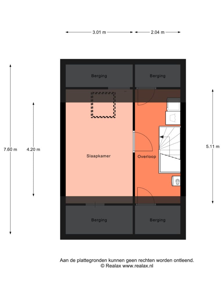 Via een vaste trap bereiken we de tweede verdieping. Overloop met aansluiting voor de wasmachine, CV en veel bergruimte. Daarnaast is er een vierde slaapkamer gemaakt, met een groot dakraam.