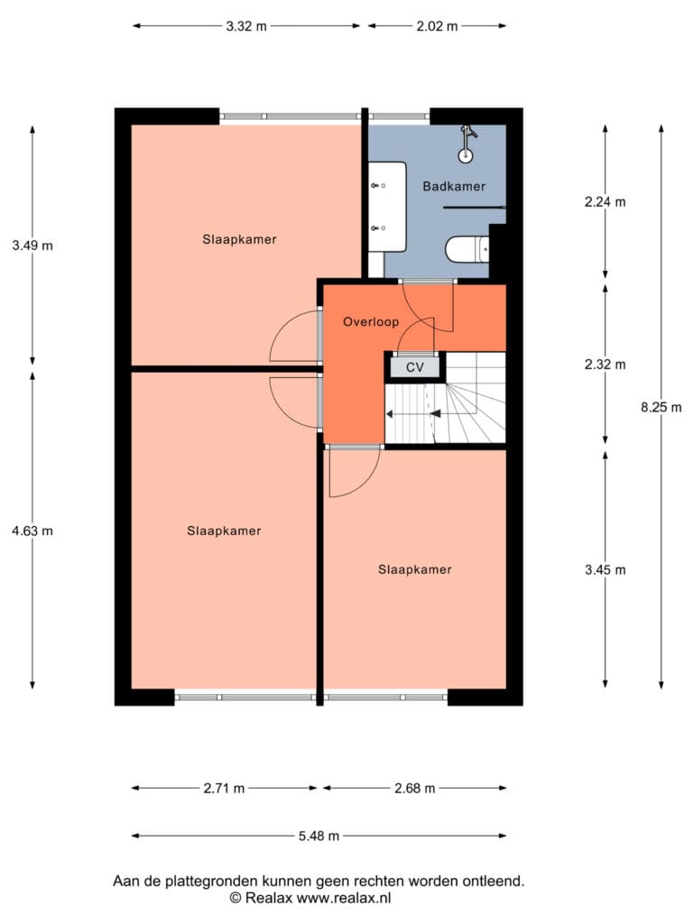 Overloop, toegang tot drie slaapkamers en de nieuwe badkamer. Deze badkamer is in 2023 volledig vernieuwd tot een eigentijds geheel. Het beschikt over een toilet, wastafelmeubel, een douche en elektrische vloerverwarming. De cv-ketel is tevens op deze verdieping gesitueerd.