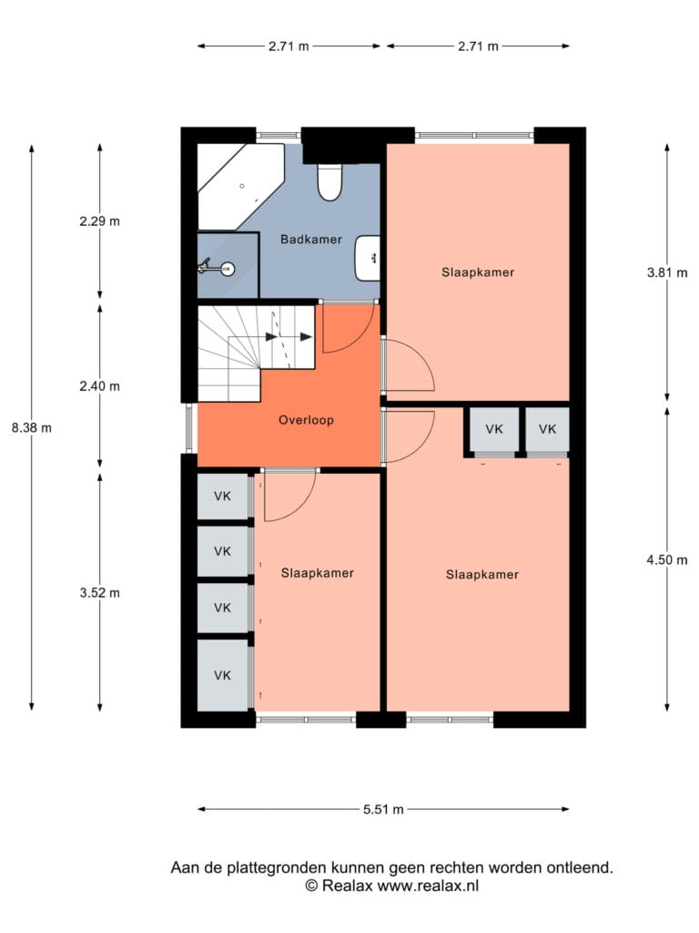Overloop, toegang tot drie slaapkamers en de badkamer. Twee slaapkamers beschikken over royale vaste kasten. De badkamer is ruim van opzet en beschikt over een bad, toilet, douche en wastafelmeubel.
