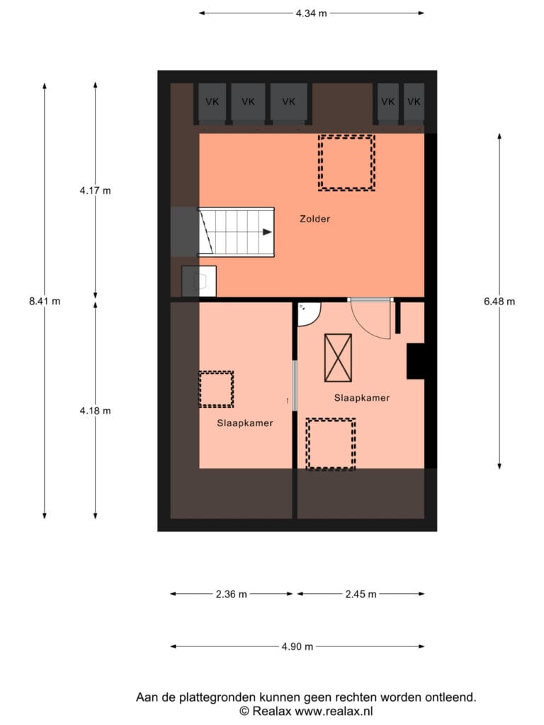 Ruime overloop met wasmachine. 2 slaapkamers waarvan 1 met toegang tot de handige bergzolder. Deze ruimte leent zich ook goed voor kantoor of werkruimte. De dakramen zorgen voor daglicht en de knieschotten zijn afgewerkt met kasten.