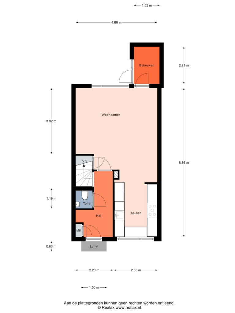 Aansluitend de praktische bijkeuken, ideaal als achteringang met ruimte voor opslag en mogelijkheid voor plaatsen wasmachine.