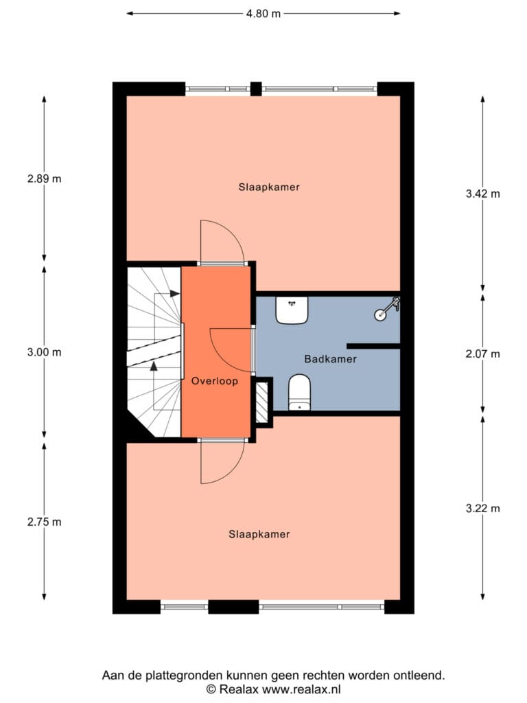 Overloop met toegang tot twee zeer royale (slaap)kamers, waaronder een bijzonder ruime ouderslaapkamer (derde slaapkamer mogelijk).