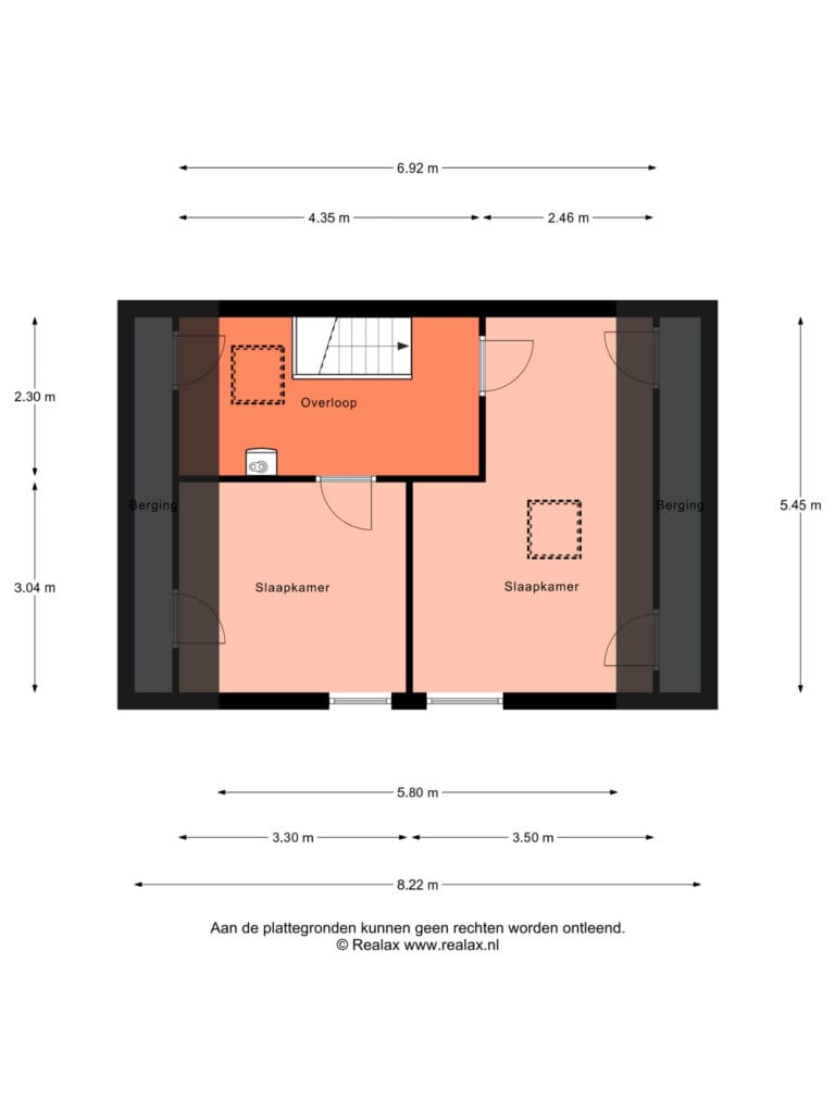 Royale overloop met opstelling cv-ketel en twee ruime slaapkamers. Het is mogelijk om op deze verdieping een luik met vlizotrap te realiseren naar een bovengelegen bergzolder.