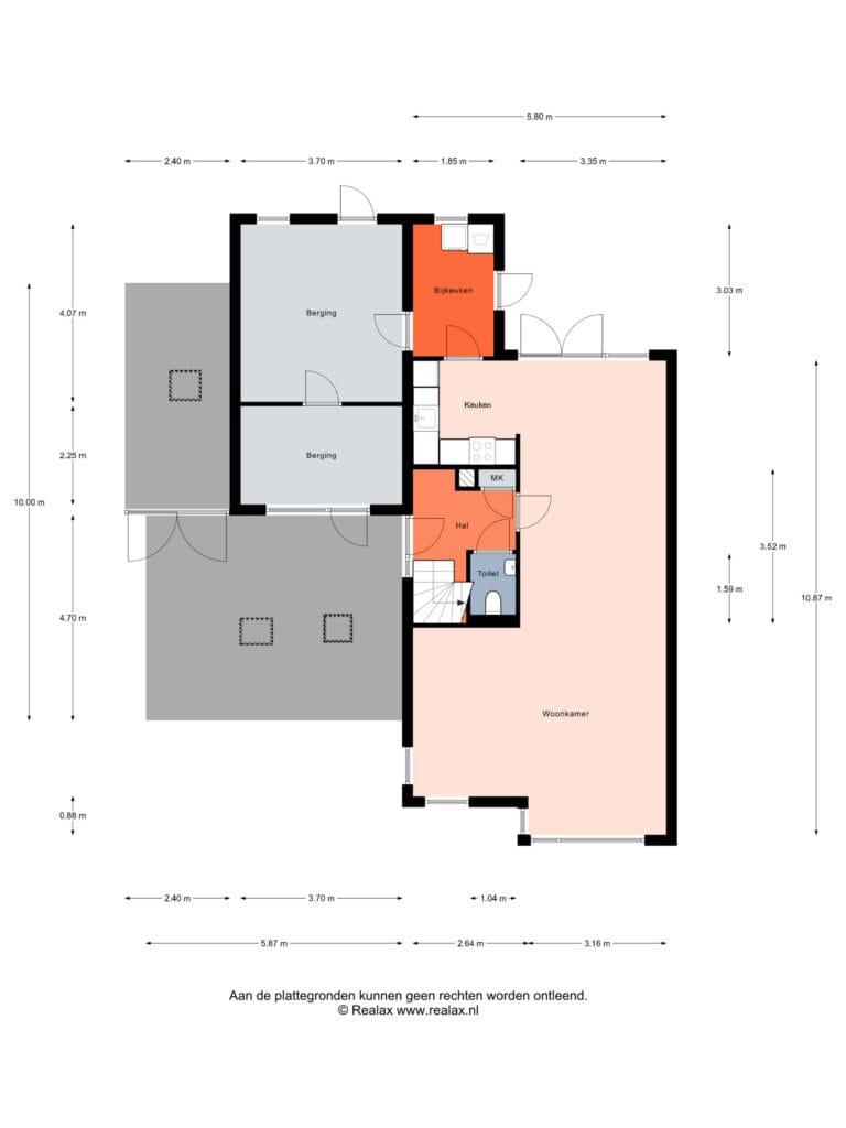 • Bijkeuken met wasmachine-/drogeraansluiting, wasbak en buitendeur.