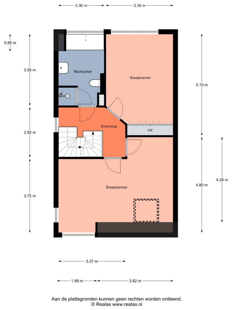 • Twee grote slaapkamers, waarvan één kamer is voorzien van een vaste kast. De ouderslaapkamers biedt de mogelijkheid om te splitsen in twee kamers zoals de oorspronkelijk was bedoeld. De extra deur is nog aanwezig.
